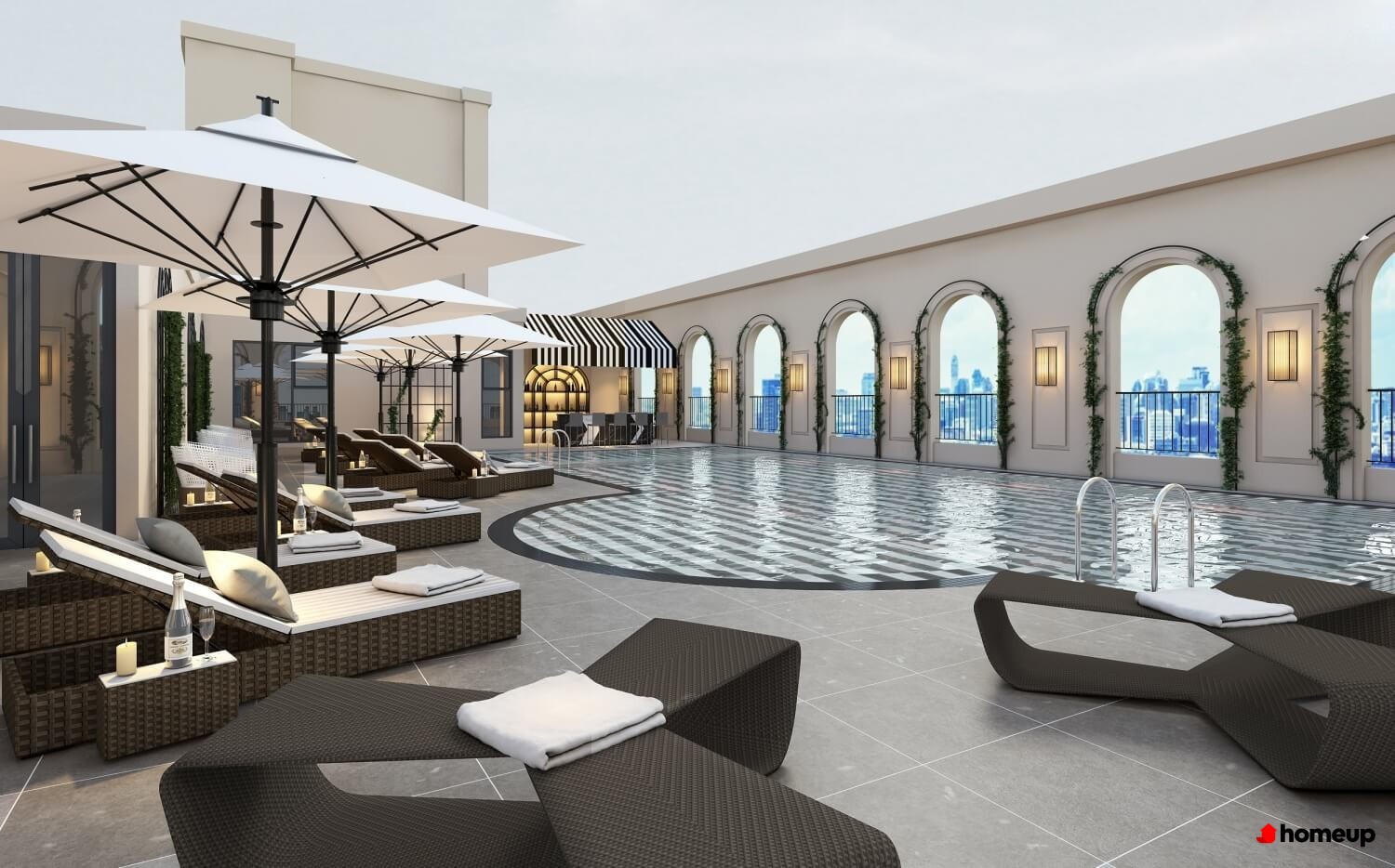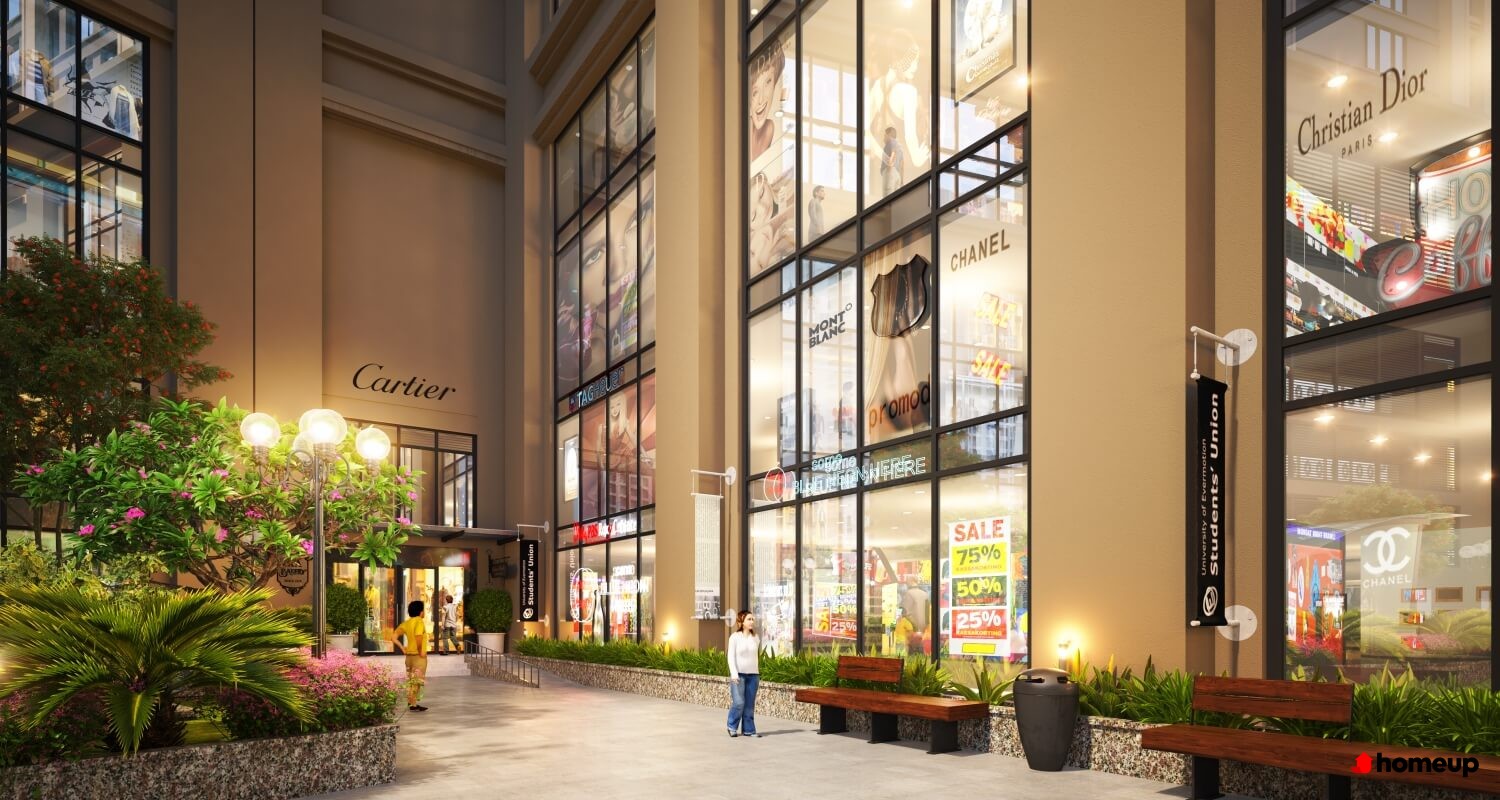 Trung tâm thương mại phục vụ ngay tại khối đế, đáp ứng nhu cầu mua sắm và giải trí hằng ngày Bể bơi ngoài trời, phòng tập gym, khu thể thao ngoài trời cùng đường dạo bộ xanh mát. Sự kết hợp giữa không gian vận động và thư giãn này góp phần nâng cao chất lượng cuộc sống, tạo môi trường cân bằng giữa công việc và nghỉ ngơi.