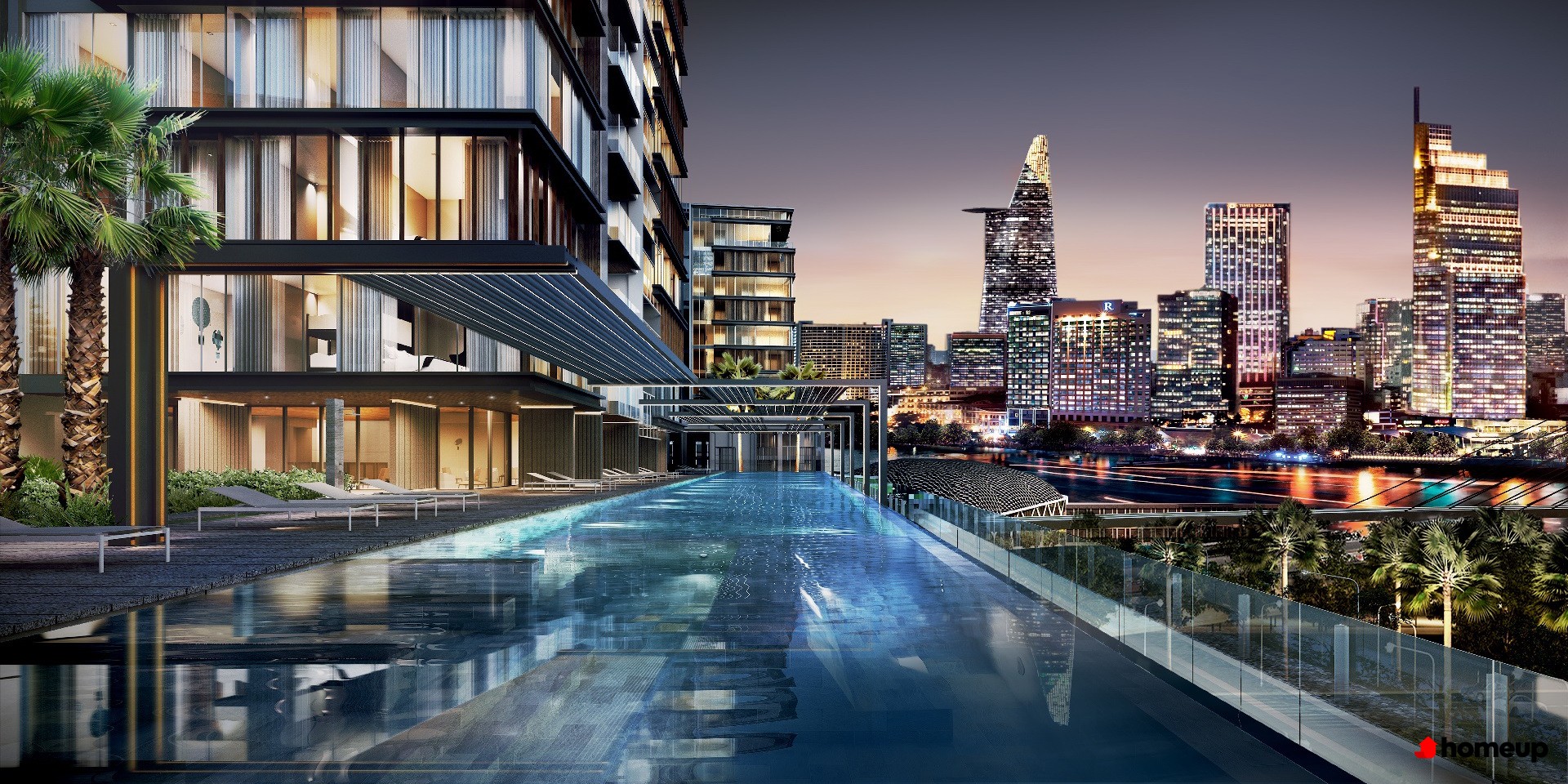 Bể bơi ngoài trời rộng rãi, với view nhìn cực chất ra trung tâm thành phố, mang đến cảm giác thư giãn tuyệt vời