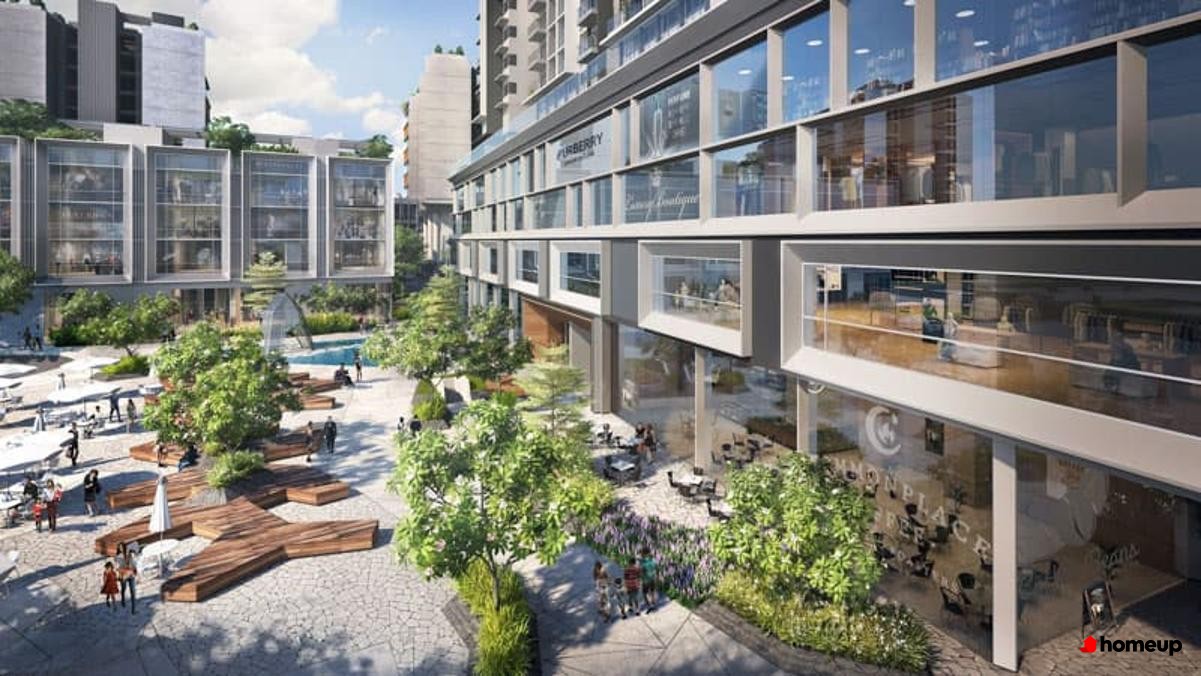 Khối đế thương mại, tích hợp nhà hàng, siêu thị, shop thời trang, quán cafe.... phục vụ hoạt động vui chơi và giải trí Tiện ích ngoại khu