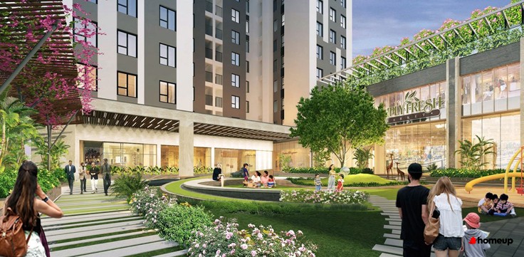 Khu vui chơi trẻ em trong lành và mát mẻ, nhiều cây xanh tự nhiên Không gian cảnh quan cũng được chăm chút với vườn hoa, khuôn viên xanh, nơi cư dân có thể tản bộ, thư giãn sau ngày dài làm việc. Sự kết hợp giữa mảng xanh và tiện ích sinh hoạt tạo nên một môi trường sống cân bằng.