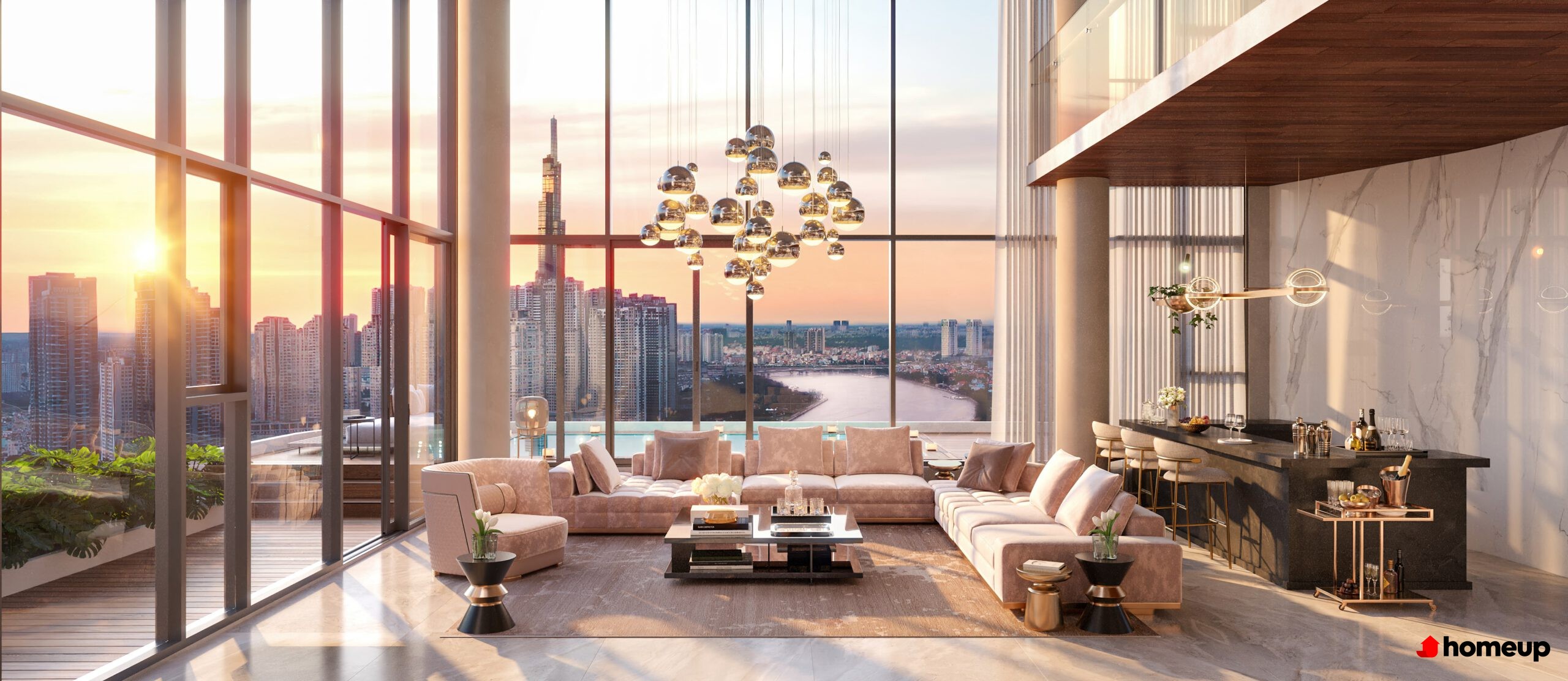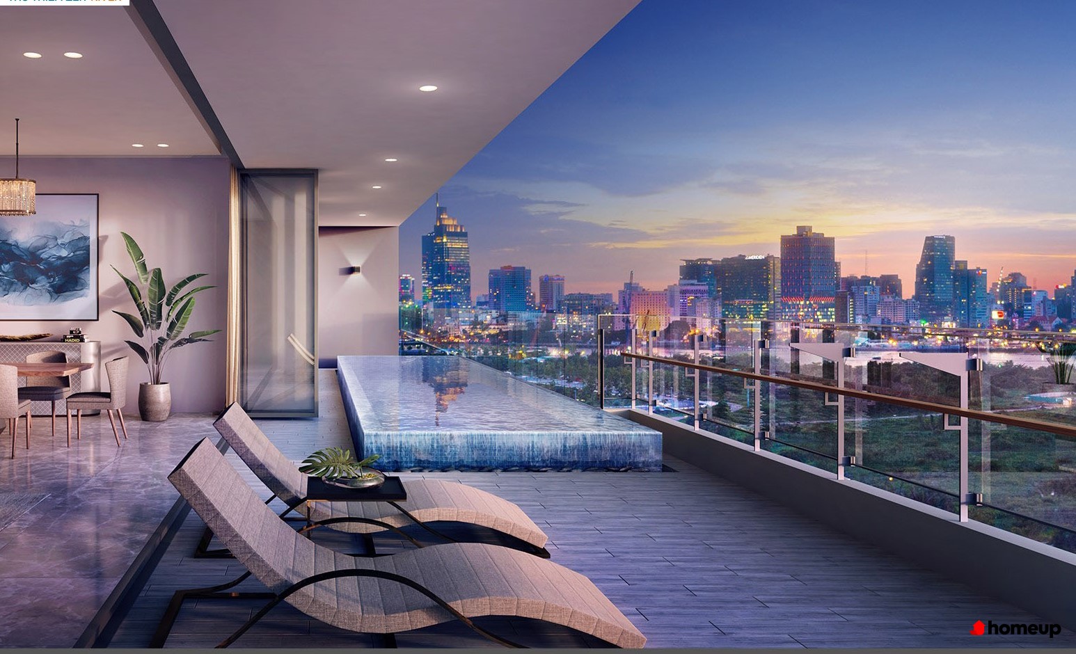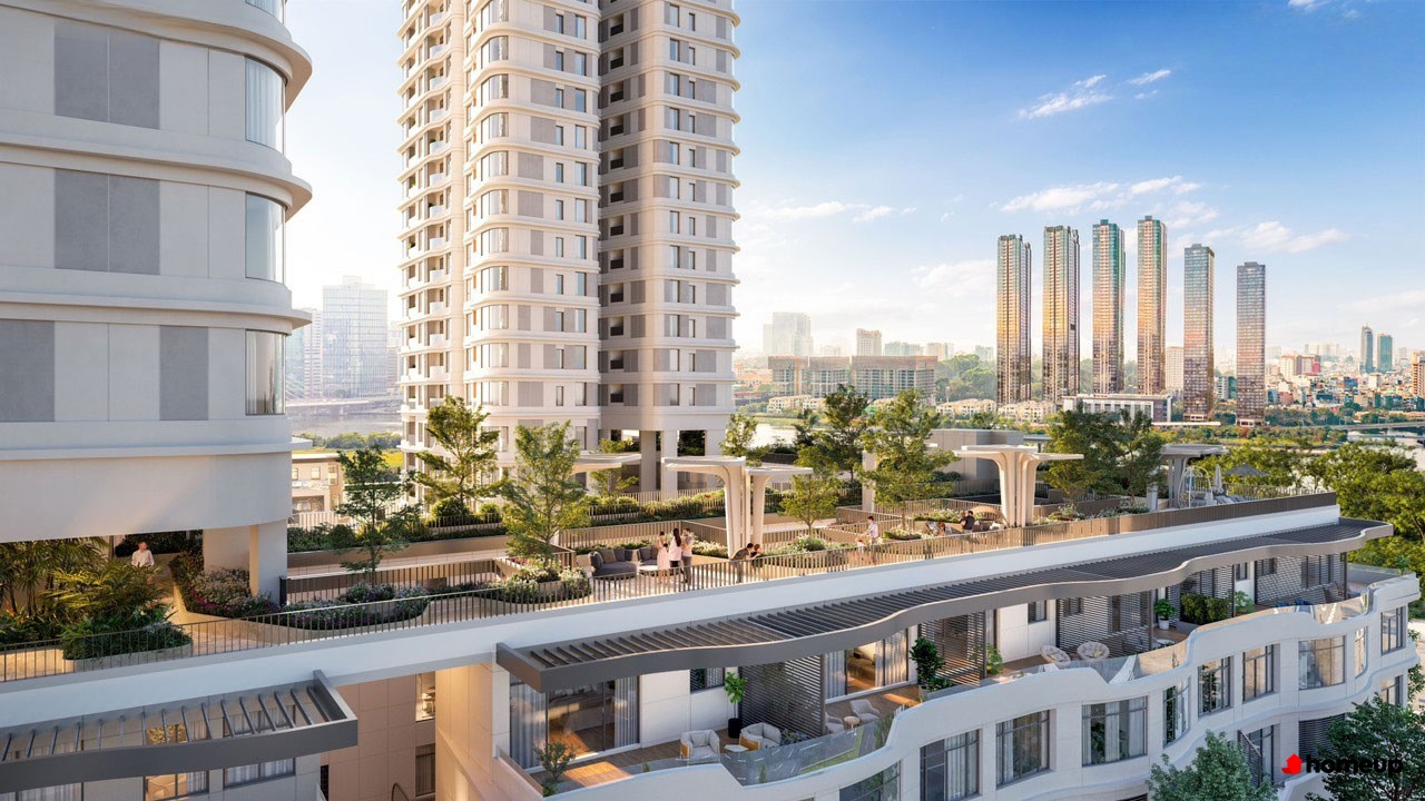 Trên các tầng cao, tầng 19 của T1 và tầng 20 của T2 được bố trí sky garden, hồ bơi trên cao và khuôn viên đọc sách, tạo trải nghiệm sống thư thái, riêng tư với tầm nhìn panorama ra sông Sài Gòn và toàn cảnh thành phố.